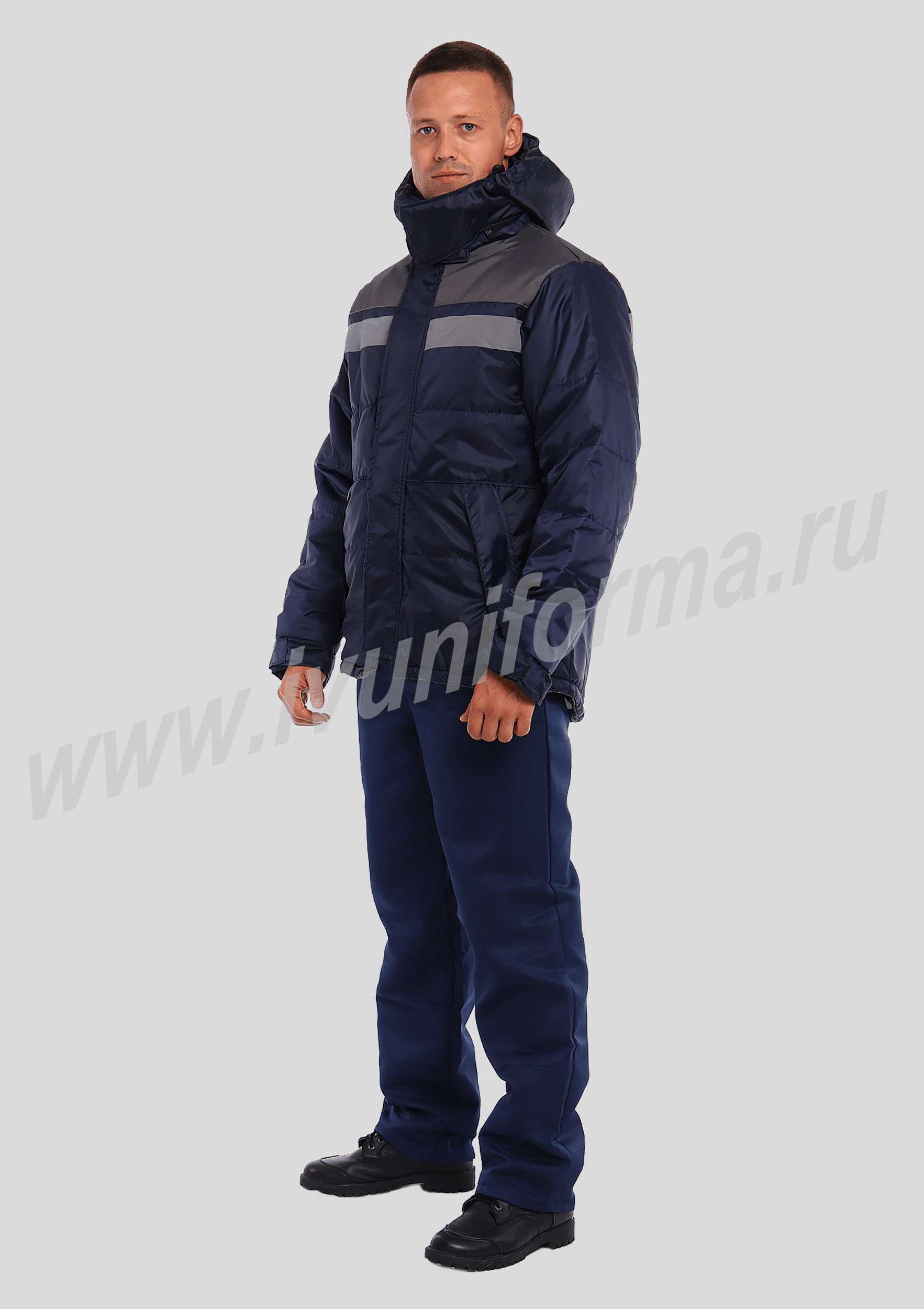 Куртка предназначена для инженерно-технических работников и представителей рабочих специальностей в качестве спецодежды для защиты от пониженных температур. Куртка выполнена с ветрозащитной планкой, застежкой на молнию и контактную ленту. Кокетка спинки и полочек выполнены из отделочной ткани, по шву притачивания кокеток спинки и полочек расположены светоотражающая полоса шириной 50 мм и светоотражающий кант, обеспечивающие защиту работающего человека в условиях пониженной видимости. Капюшон регулируется по лицевой части при помощи эластичного шнура и фиксаторов. Низ рукава выполнен на манжете, размер которого регулируется при помощи контактной ленты.